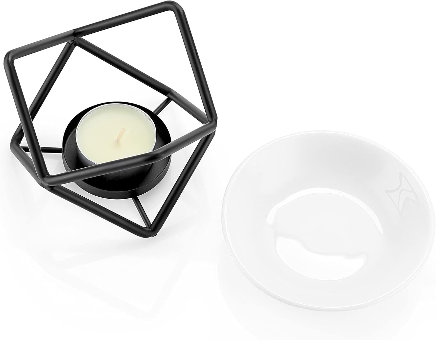 Minimalist in design yet powerful in purpose, the Baff Aroma Burner Diffuser in matte black is a sophisticated way to transform your space with pure fragrance. Made with a sleek black metal frame and paired with a heat-safe ceramic bowl, this burner uses the gentle flame of a tealight candle to diffuse essential oils or wax melts. Designed to complement modern interiors, it delivers both ambiance and therapeutic benefit in one refined piece.
