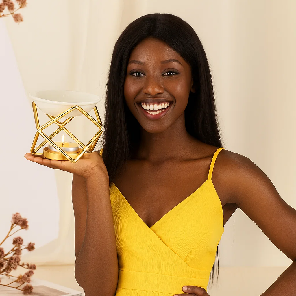 The Baff Aroma Burner in gold combines timeless elegance with the natural power of aromatherapy. Crafted from durable metal with a radiant gold finish and paired with a ceramic bowl, this burner provides a stylish and effective way to fill your space with the therapeutic essence of essential oils or wax melts. Ideal for use at home, in wellness studios, or as a sophisticated décor piece, it delivers warmth, scent, and serenity in one compact design.