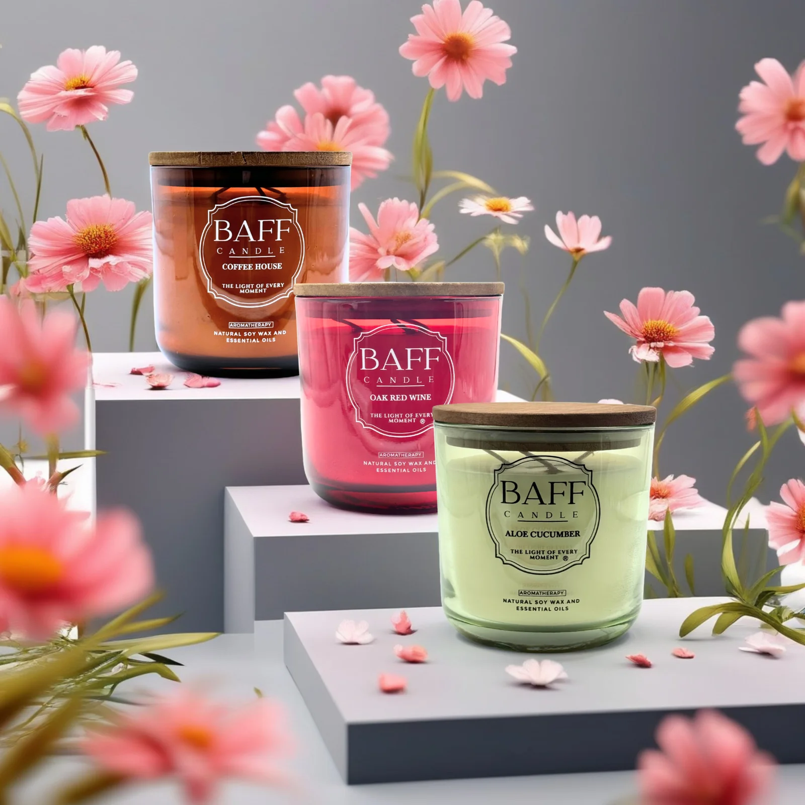 Discover the sensory depth of the Baff Candle Collection featuring three signature fragrances designed for sophistication and emotional comfort. Each candle is hand-poured with 100% natural soy wax and built with a triple-wick format to deliver an even, radiant burn and a richly layered scent experience. Ideal for refined interiors, focused routines, or peaceful self-care, this collection captures mood, memory, and atmosphere in every flicker.