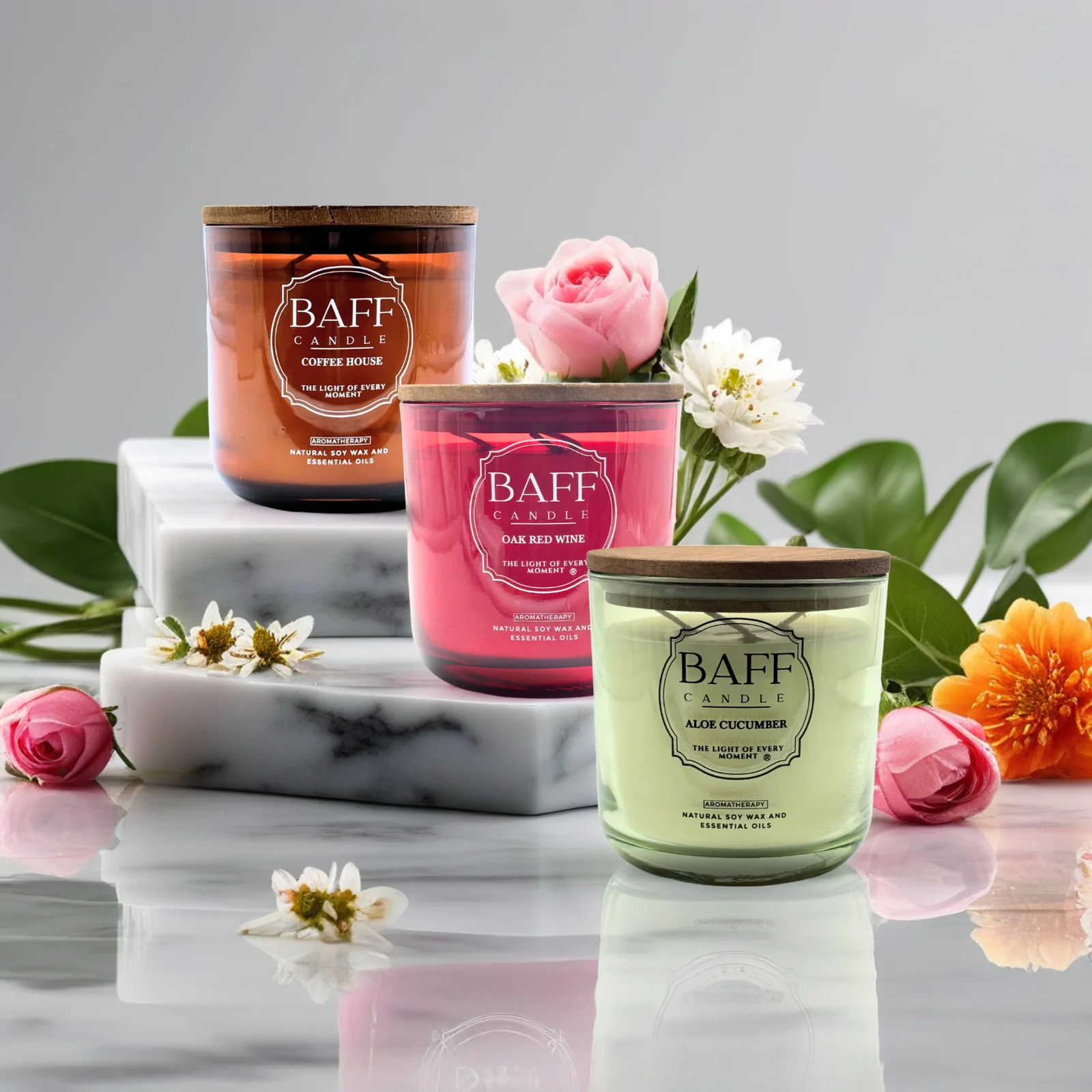 From morning energy to evening unwind, the Baff Candle Collection invites you to explore scent in three expressive layers: