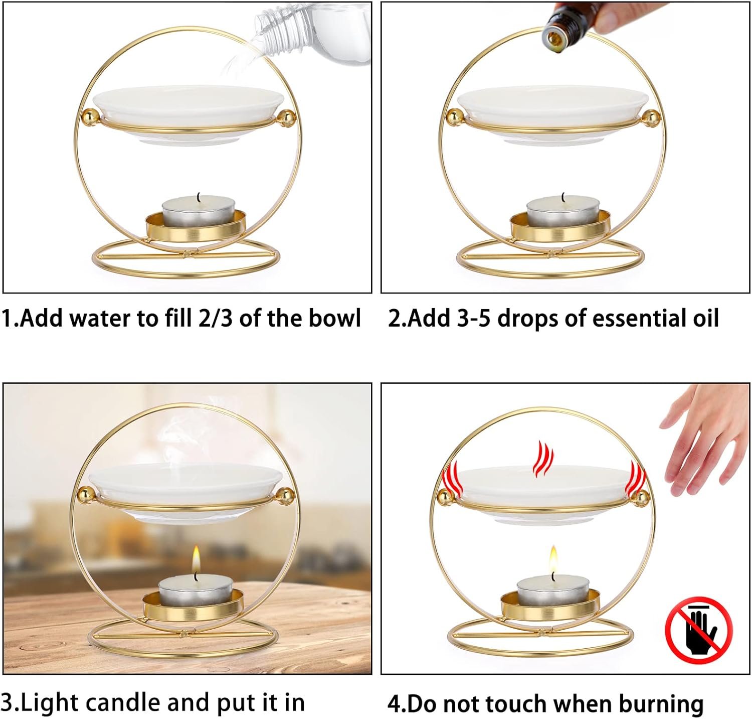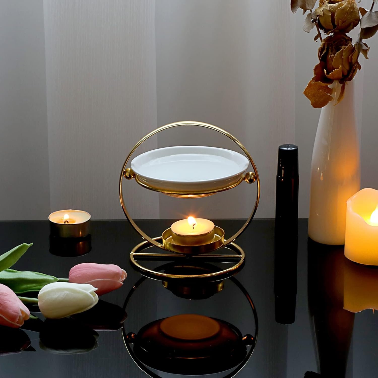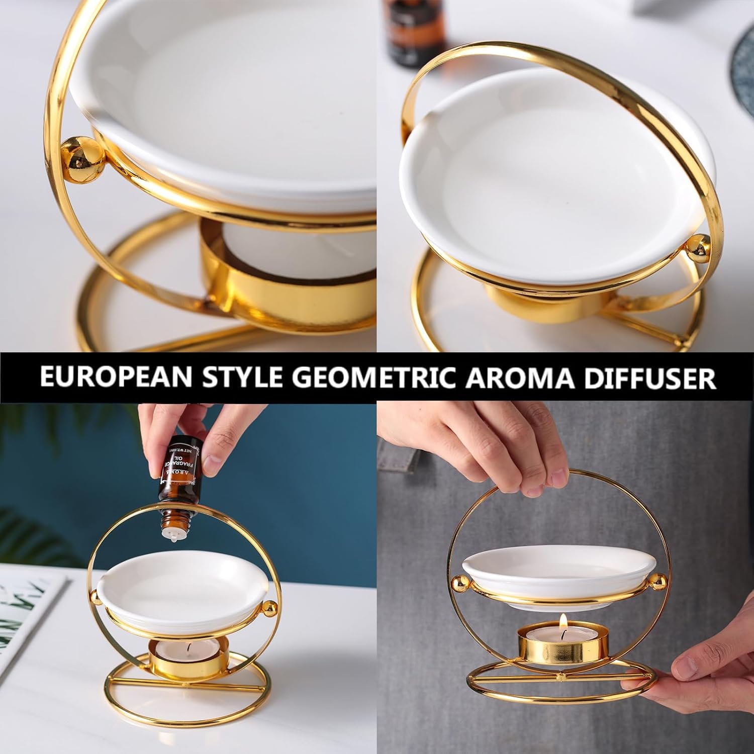 aromatic oil burner wax melt burner with ceramic bowl (black & gold)Baff Essential Oil Aroma Diffuser Tea Light Candle Centerpiece (Gold)