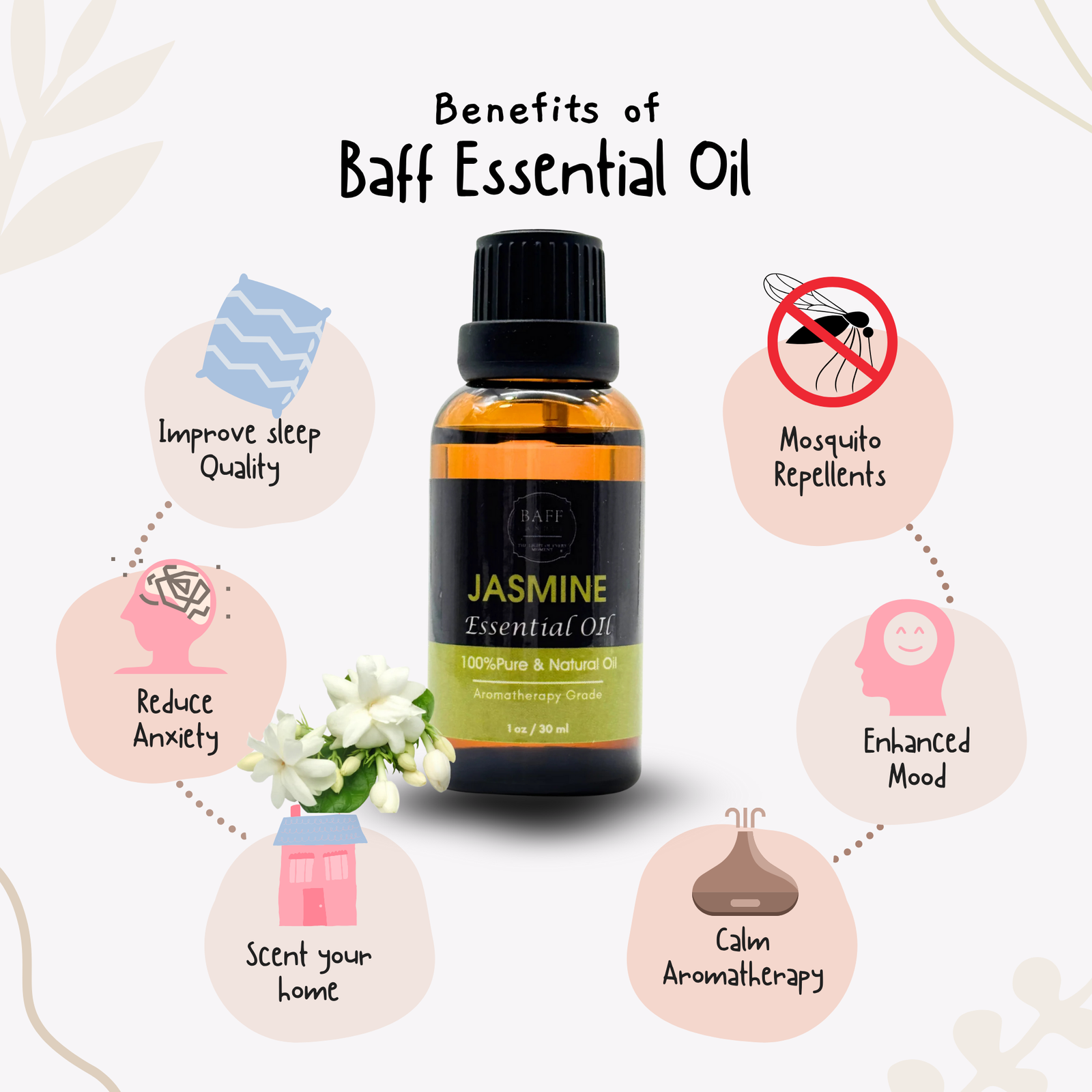 Baff Essential Oil – Jasmine | 100% Pure | Aromatherapy Grade (30ml)