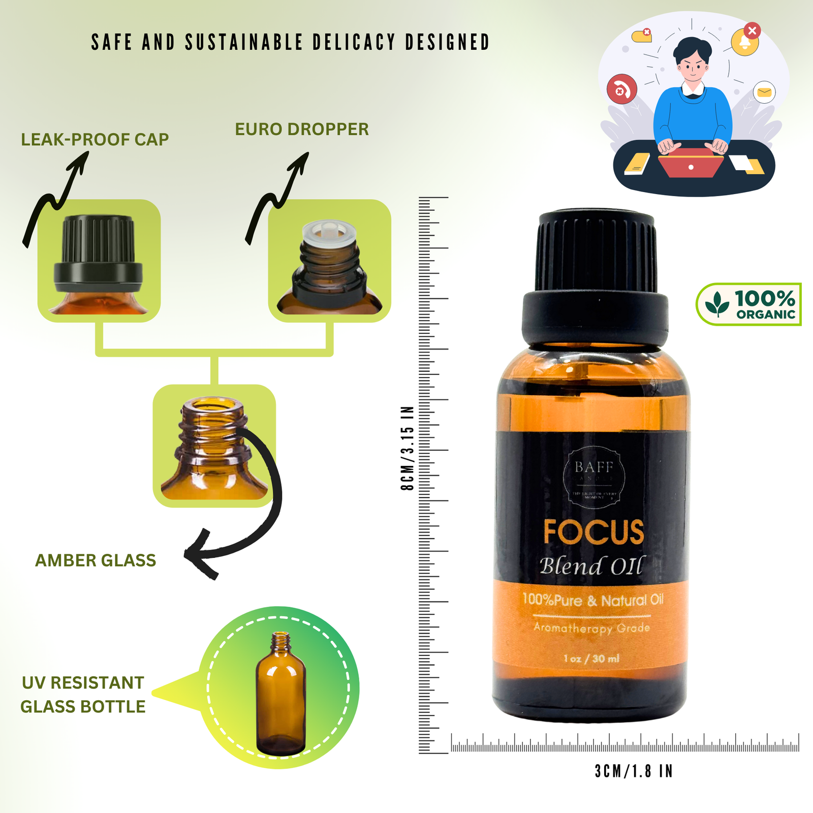 Amber glass bottle ensures potency and longevity