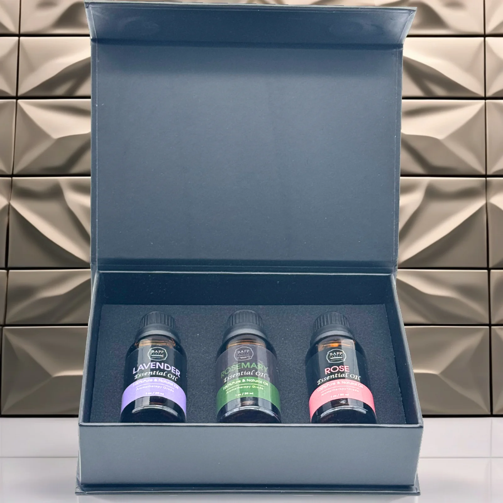 The Baff Candle Essential Oil Collection combines the gentle power of flowers and herbs to soothe, uplift, and restore balance. Lavender brings deep relaxation and restful sleep, Rosemary refreshes the mind and improves clarity, while Rose surrounds you with comfort, love, and emotional harmony. Perfect for everyday self-care and sacred moments.