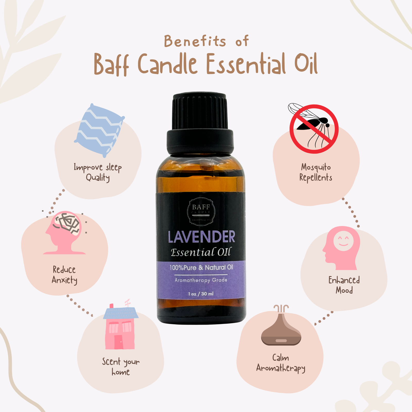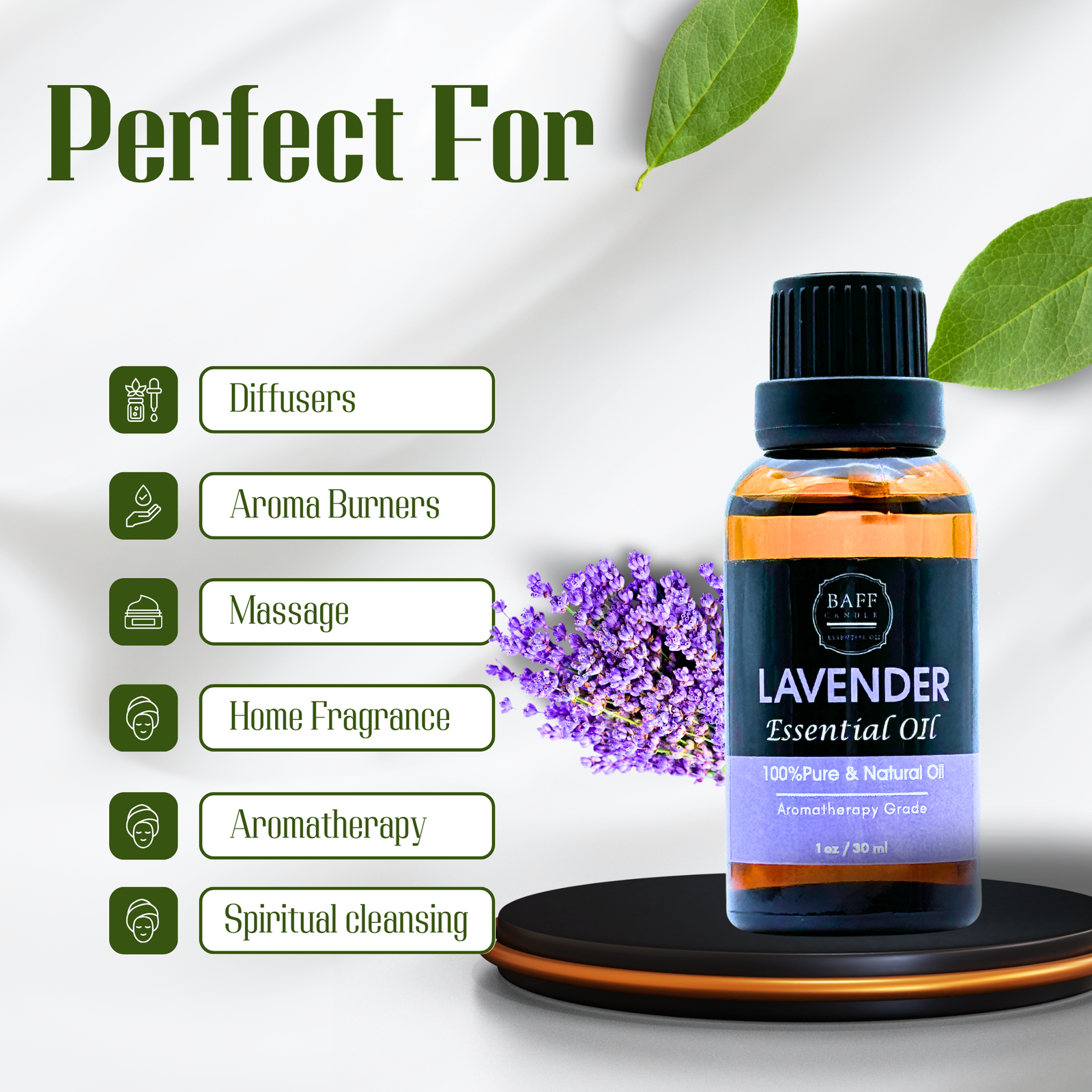 Bring peace to your body, mind, and spirit with Baff Lavender Essential Oil — a 100% pure and undiluted oil steam-distilled from fresh lavender flowers. This timeless oil is renowned in aromatherapy for its soothing, floral scent and gentle therapeutic properties.