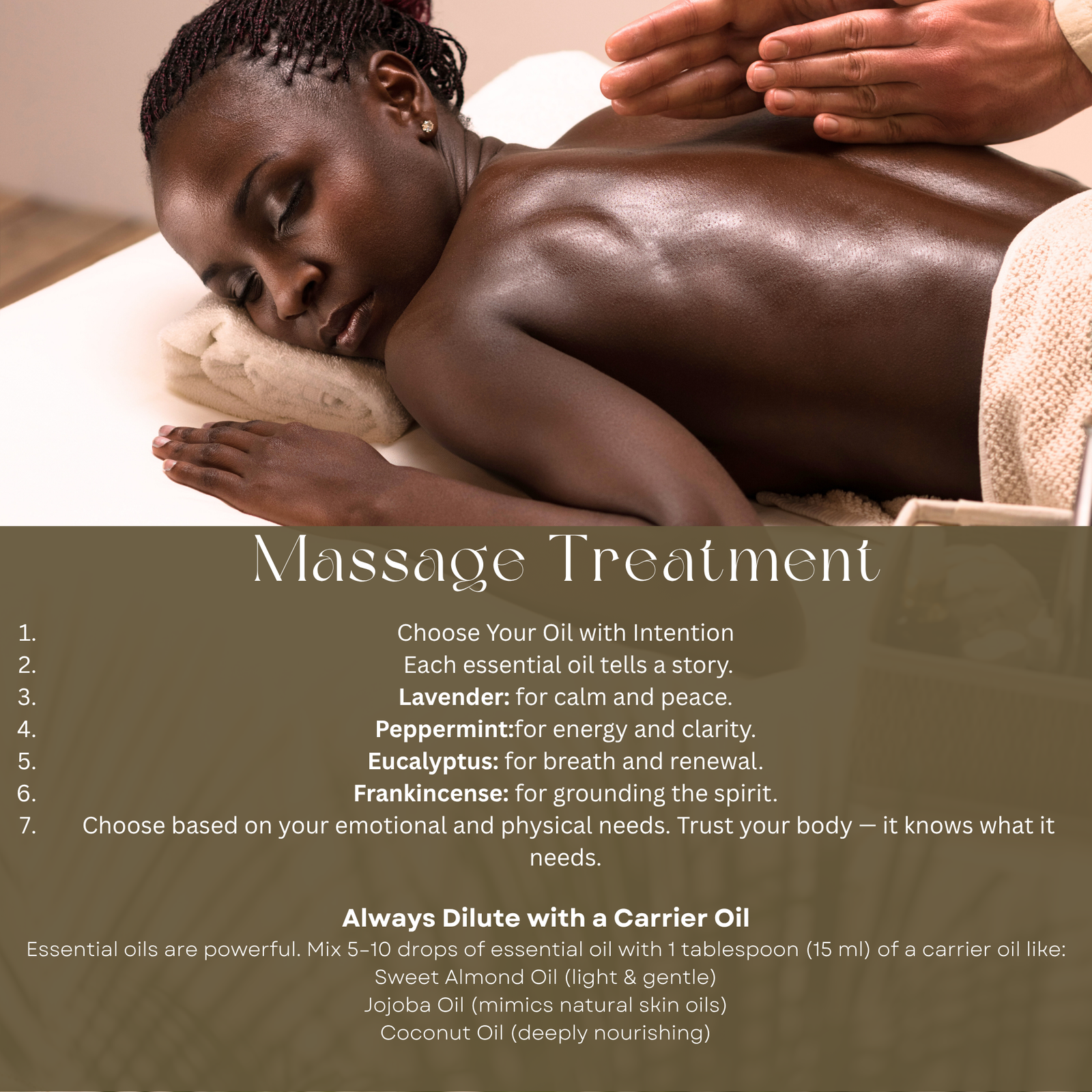 • Massage: Dilute with a carrier oil and apply to shoulders, temples, or feet to ease stress