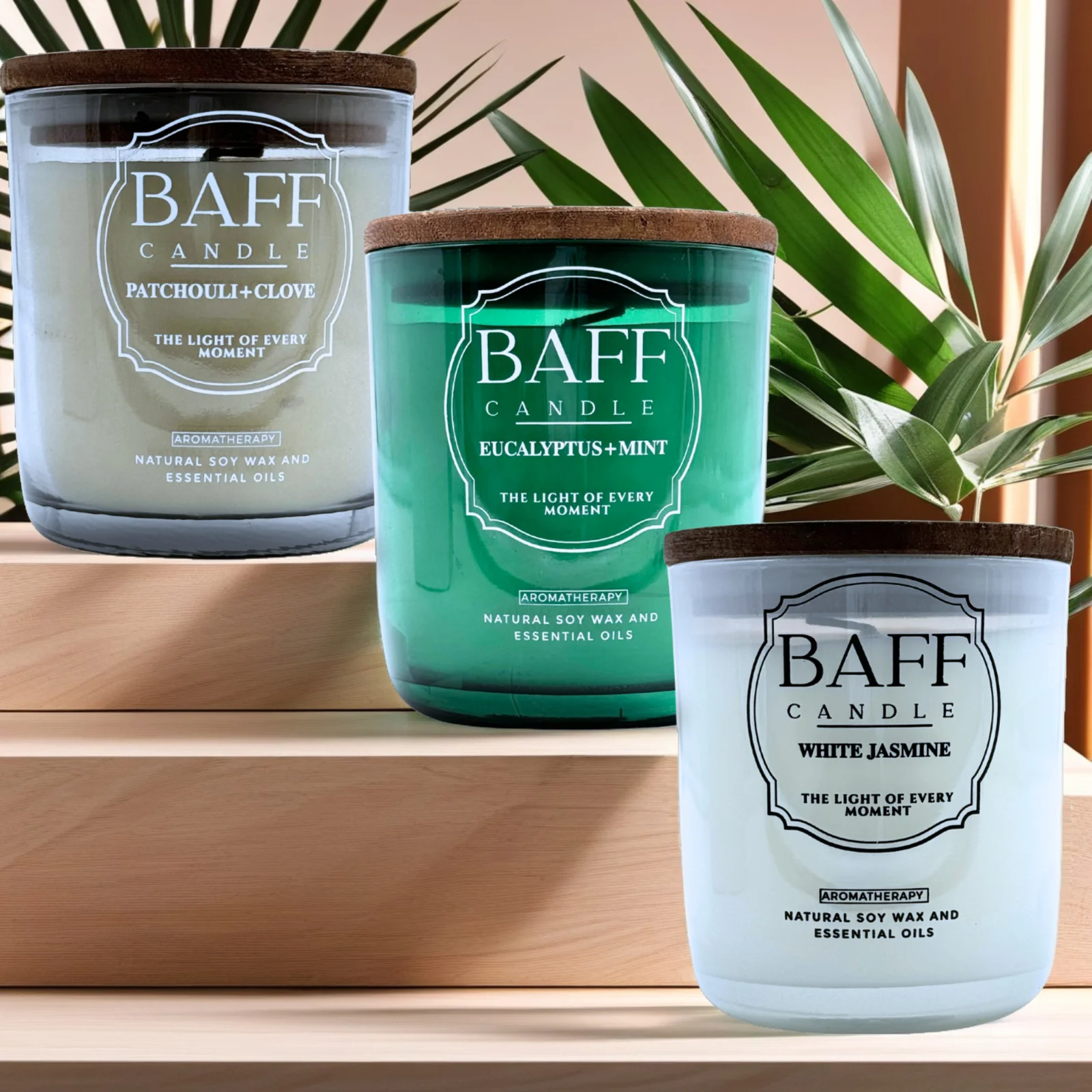 Baff Candle Collection | Patchouli Clove | Eucalyptus Mint | White Jasmine