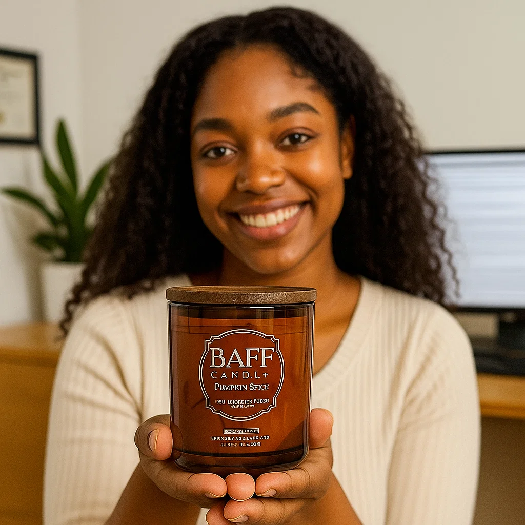 No harsh chemical smell just a pure, cozy pumpkin aroma. You can tell it’s made from quality soy wax.